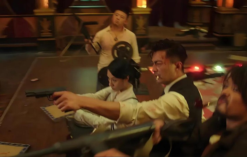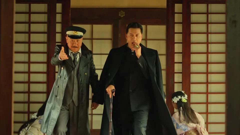 《暗杀1932》开篇,楼上就坠落一个人,镜头拉伸到室内,上海滩黑帮大佬胡八爷,正跟日本皇军谈判,双方属下持枪,剑拔弩张!