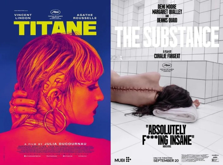 兴起于上世纪80年代的“身体恐怖”电影(Body horror)在本世纪20年代大有回潮之势,个别影片已从不受主流待见的B级片中成功挣脱:如问鼎2021年戛纳金棕榈奖、朱利亚·迪库诺的《钛》和收揽奥斯卡、金球奖数项提名,科拉莉·法尔雅的《某种物质》。