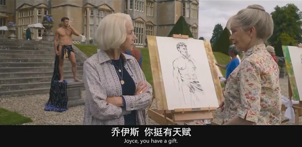 另一个是乔伊斯照着half-naked的男模画画,结果出现在画布上的男模是naked的。伊丽莎白夸乔伊斯:“你挺有天赋!”英文原文是:“you have a gift!”联想到“gift”还有“礼物”的意思,真是耐人寻味呢😉