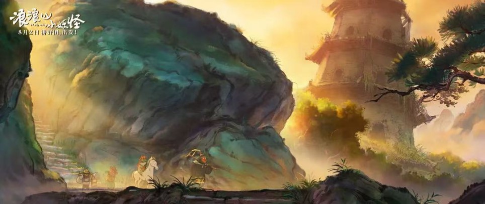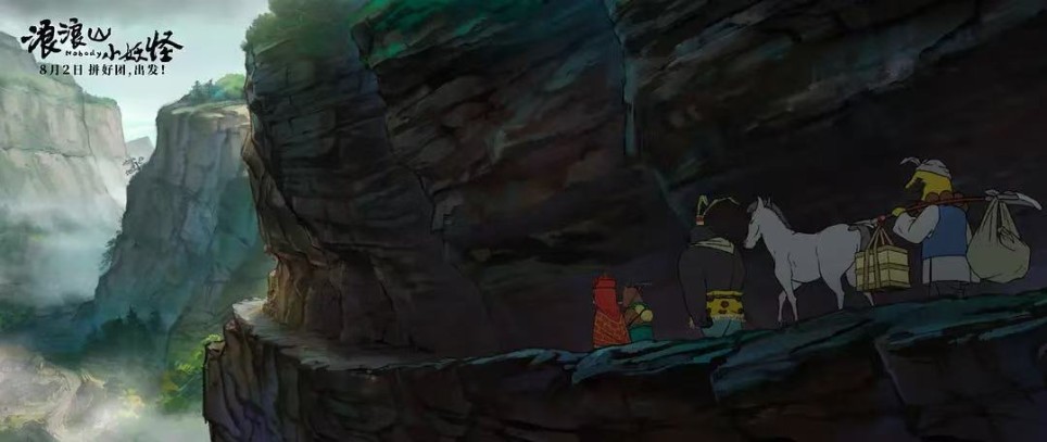 明媚的色彩,是影片的第一感觉,山水画式的作画方式增添了几分大气也流露几分秀气。绿树蓝天,迸发出一丝天真乐观也引导着观众走向哀伤结局的失落,谁人不想翻越浪浪山?